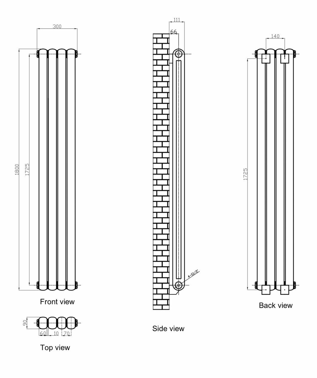 Вертикальний дизайнерський радіатор опалення ARTTIDESIGN Verona 4/1800/300 сірий матовий