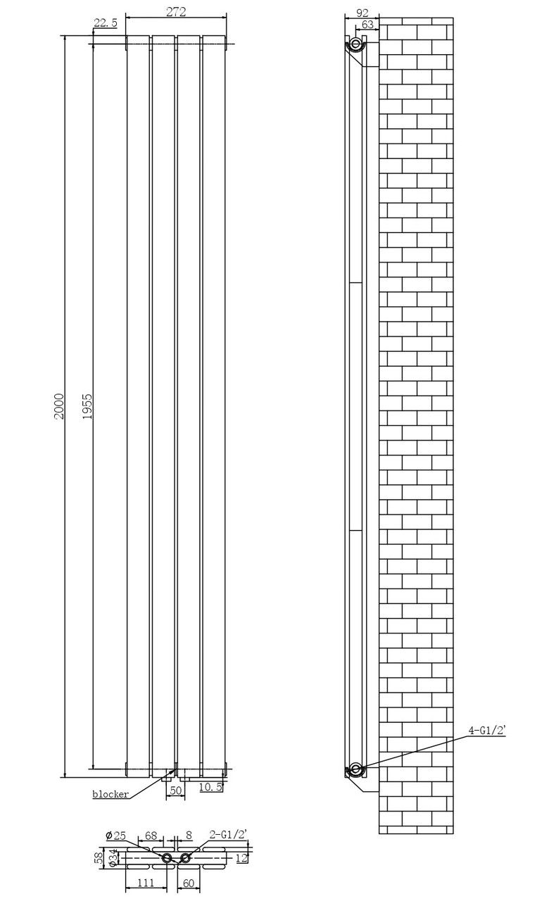 нижнее подключение по бокам 272 мм