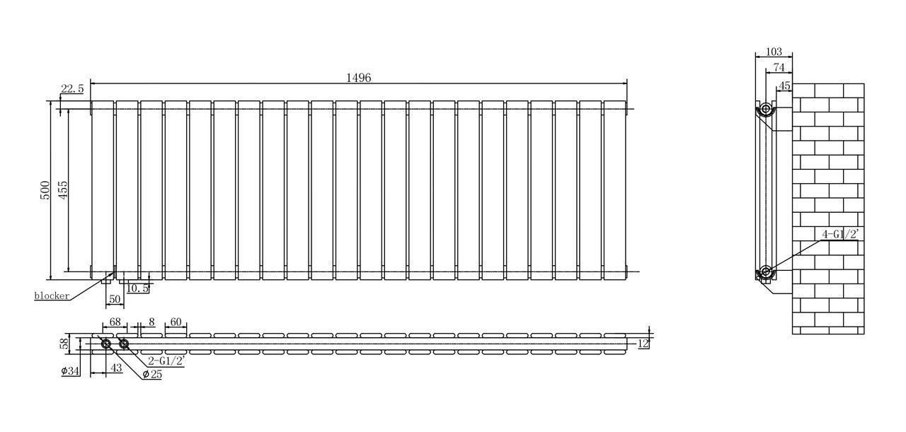 Розмір: висота — 500 мм. ширина — 1496 мм.