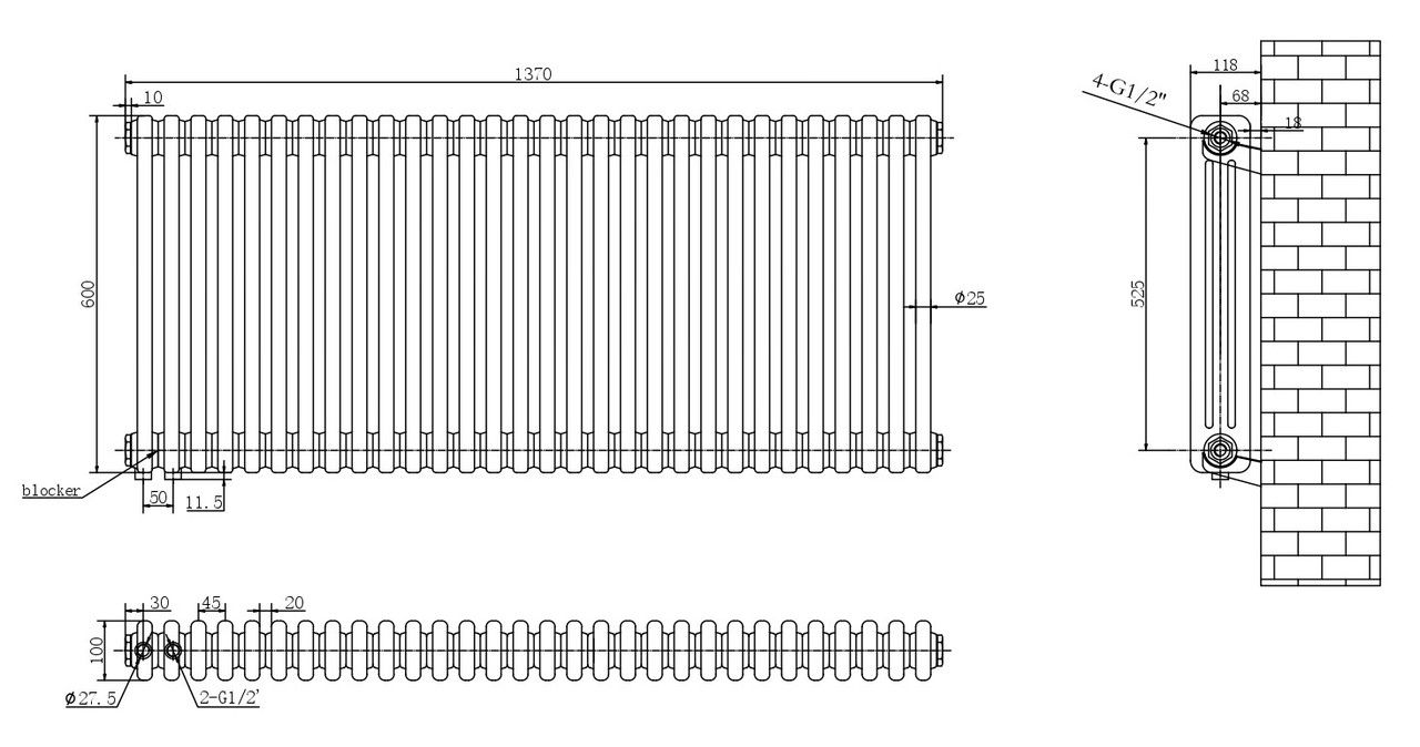Размер: высота - 600 мм. ширина - 1370 мм.