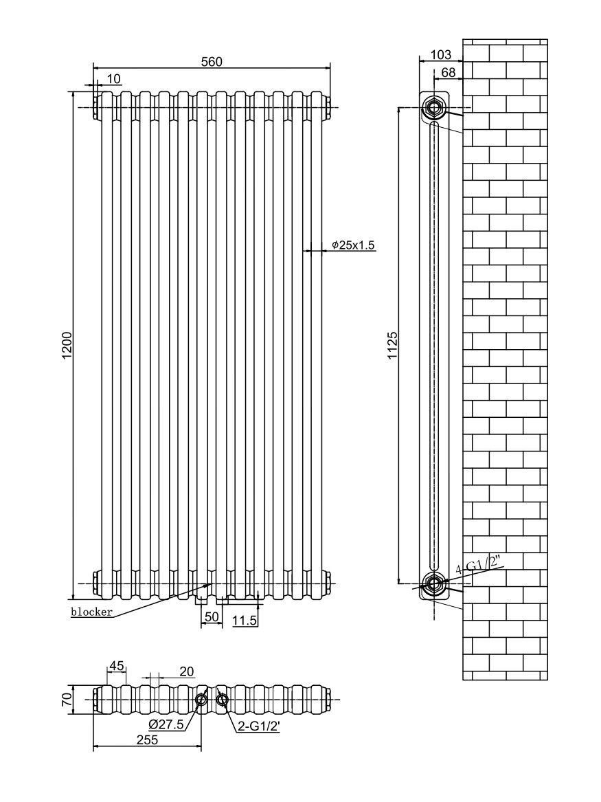 Вертикальный дизайнерский радиатор отопления ARTTIDESIGN Bari II 12/1200/560/50 чорний матовий