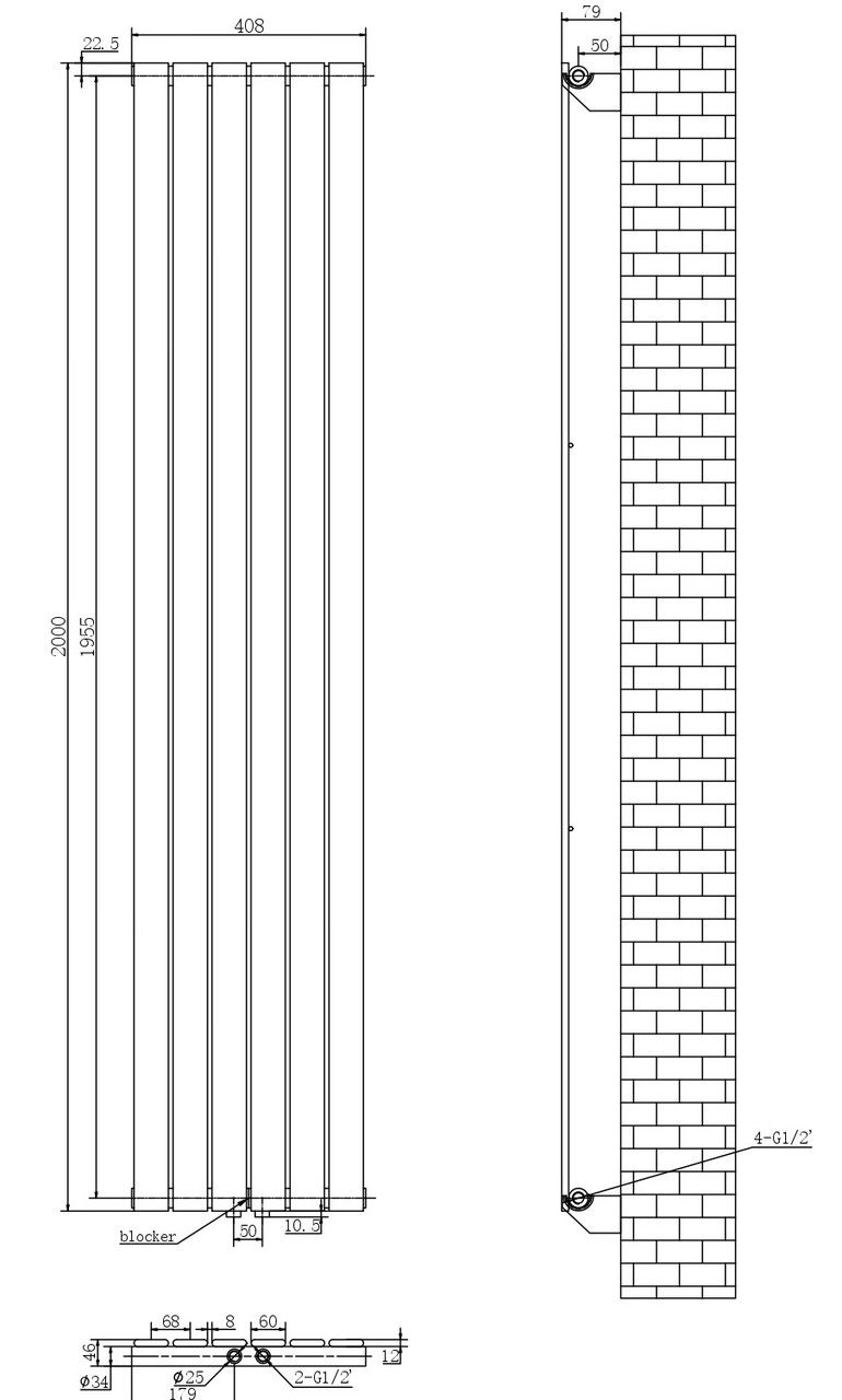 Вертикальный дизайнерский радиатор отопления ARTTIDESIGN Livorno 6/2000/408/50 чёрный матовый