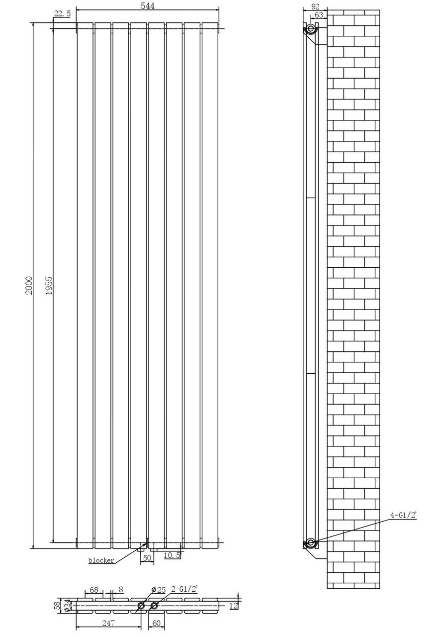 Вертикальный дизайнерский радиатор отопления ARTTIDESIGN Livorno ІІ 8/2000/544/50 черный матовый